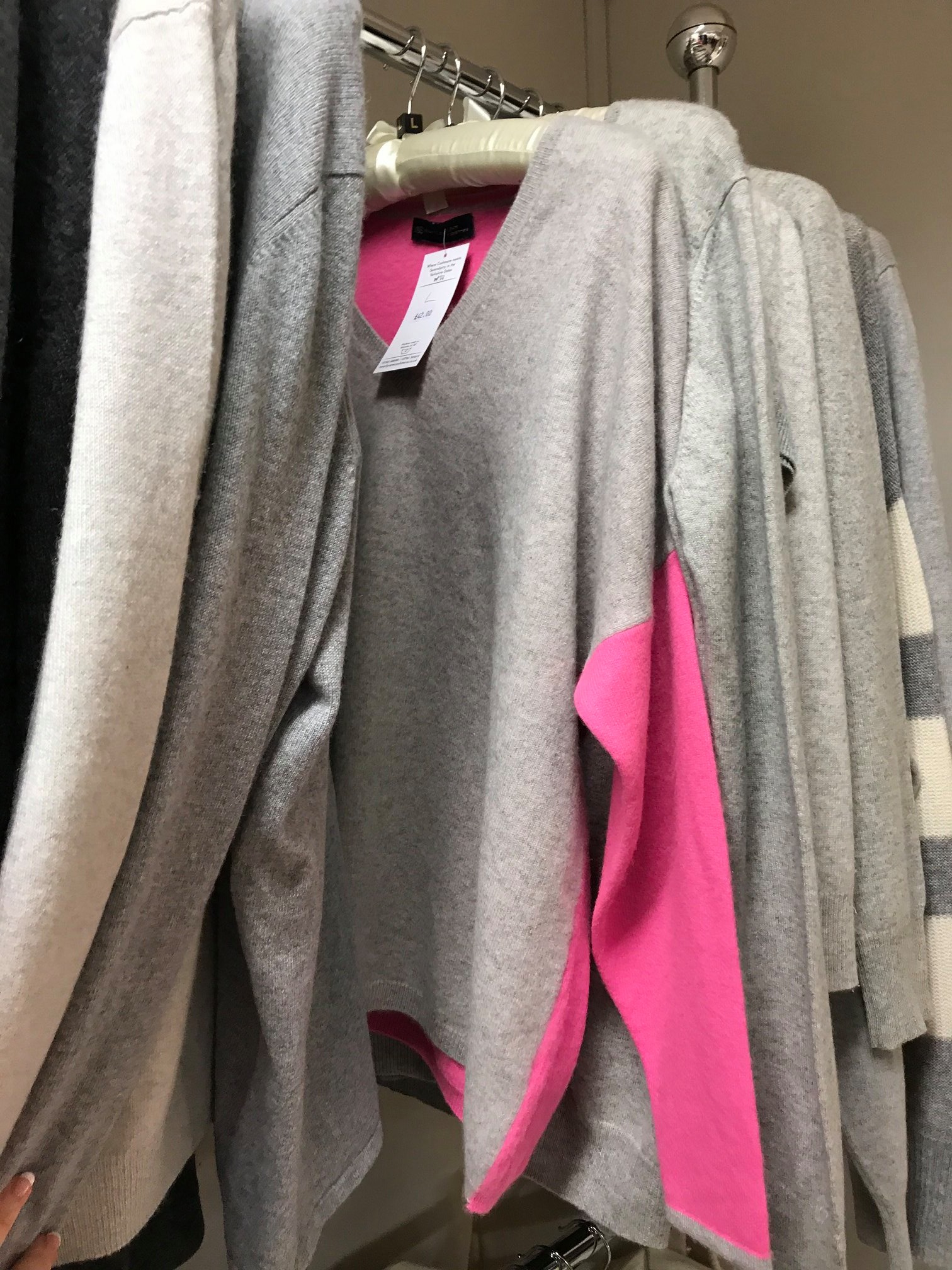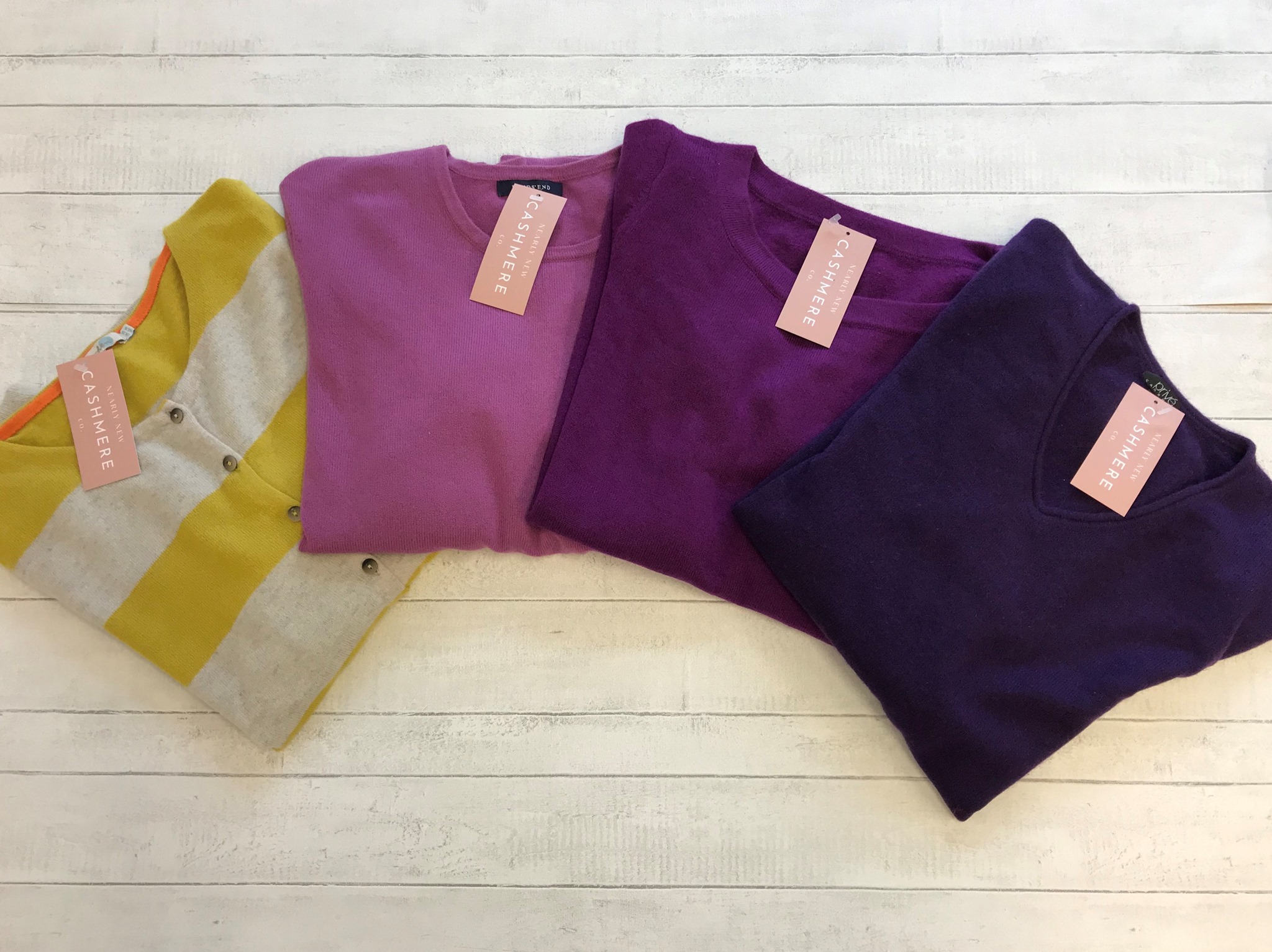 Our Nearly New Cashmere Co. knitwear ranges from £34 to £60. Individual pieces will be on the website and facebook page this Autumn. Contact me for more information. Keep your eyes peeled!