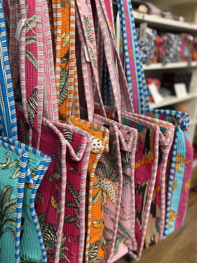 We love this amazing range of beautifully sewn, 100% cotton hand block quilted bags from India.
